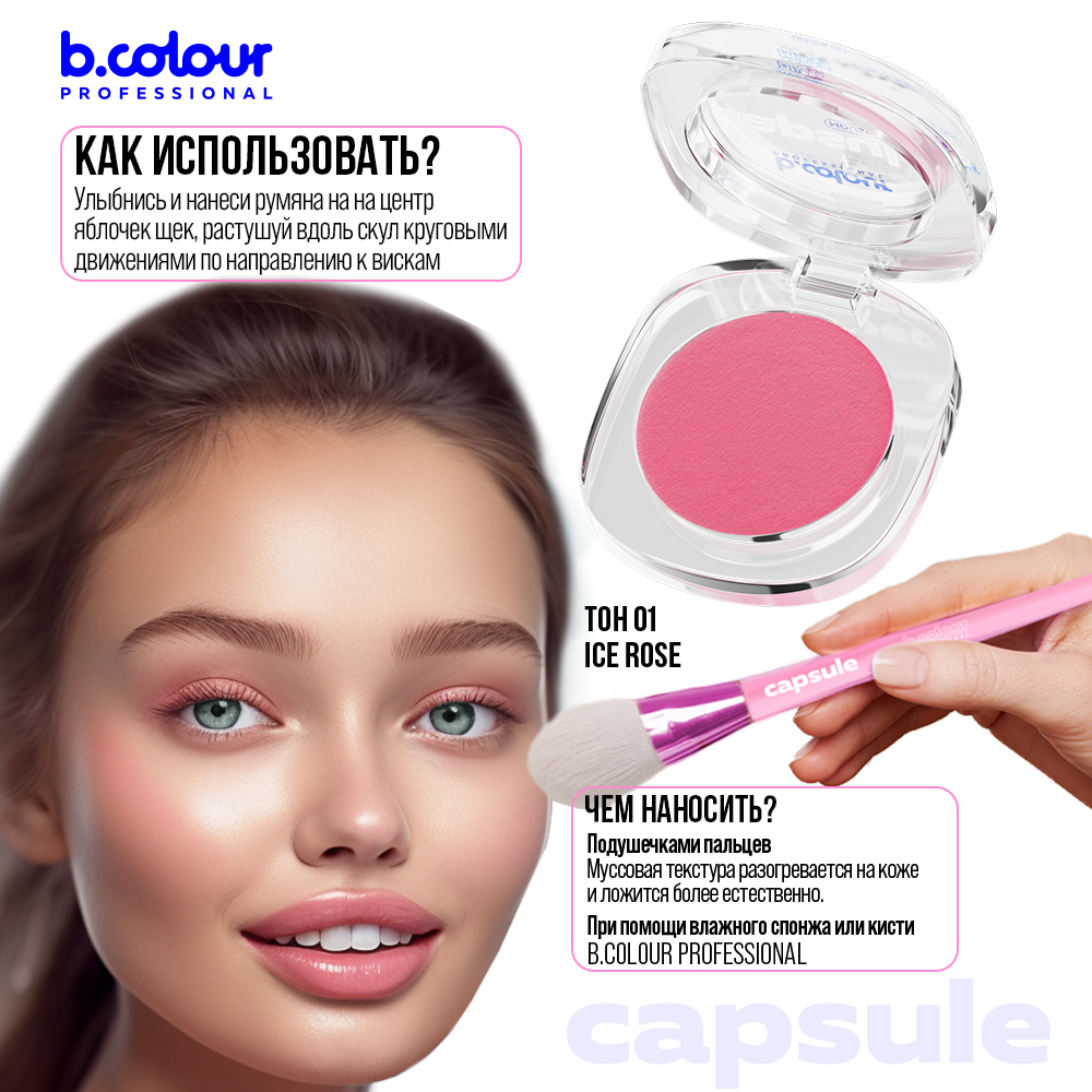Румяна для лица B.COLOUR PROFESSIONAL CAPSULE кремовые 01 Ice rose