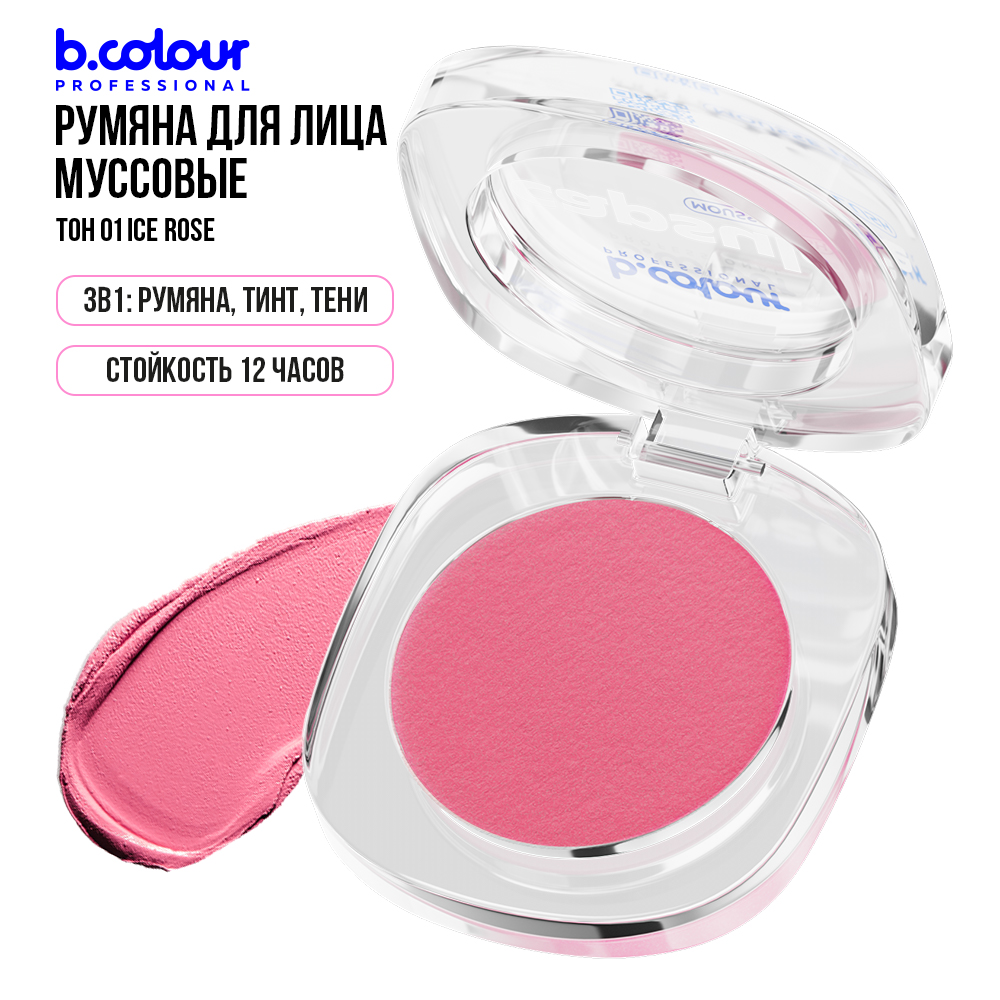 Купить B.COLOUR PROFESSIONAL Румяна для лица кремовые, тинт для губ, тени для век CAPSULE 01 ICE ROSE