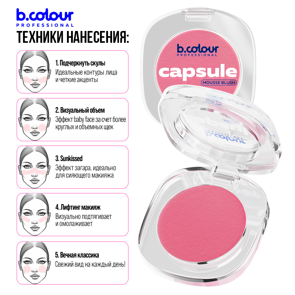 Румяна для лица B.COLOUR PROFESSIONAL CAPSULE кремовые матовые муссовые 02 Just Peachy