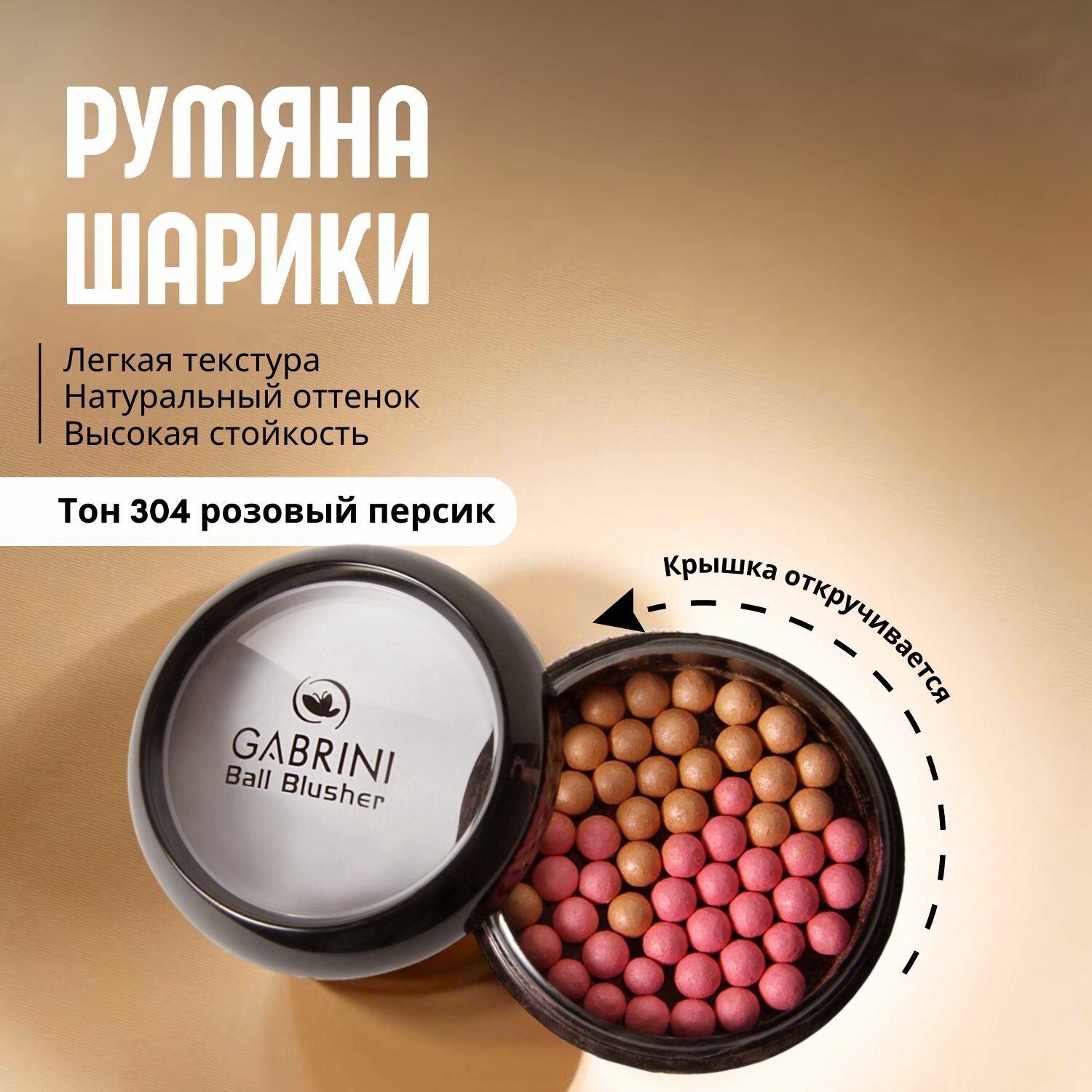 Купить Румяна в шариках Gabrini Ball Blusher, сатиновые, стойкие, тон 304 розовый персик, 20,0 г