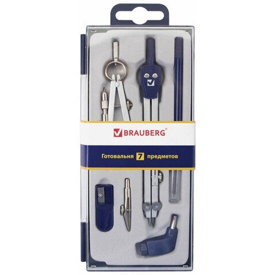 Готовальня BRAUBERG "Student Oxford", 7 предметов: наполнение-1, пенал с подвесом, 210347 В комплекте: 1шт.