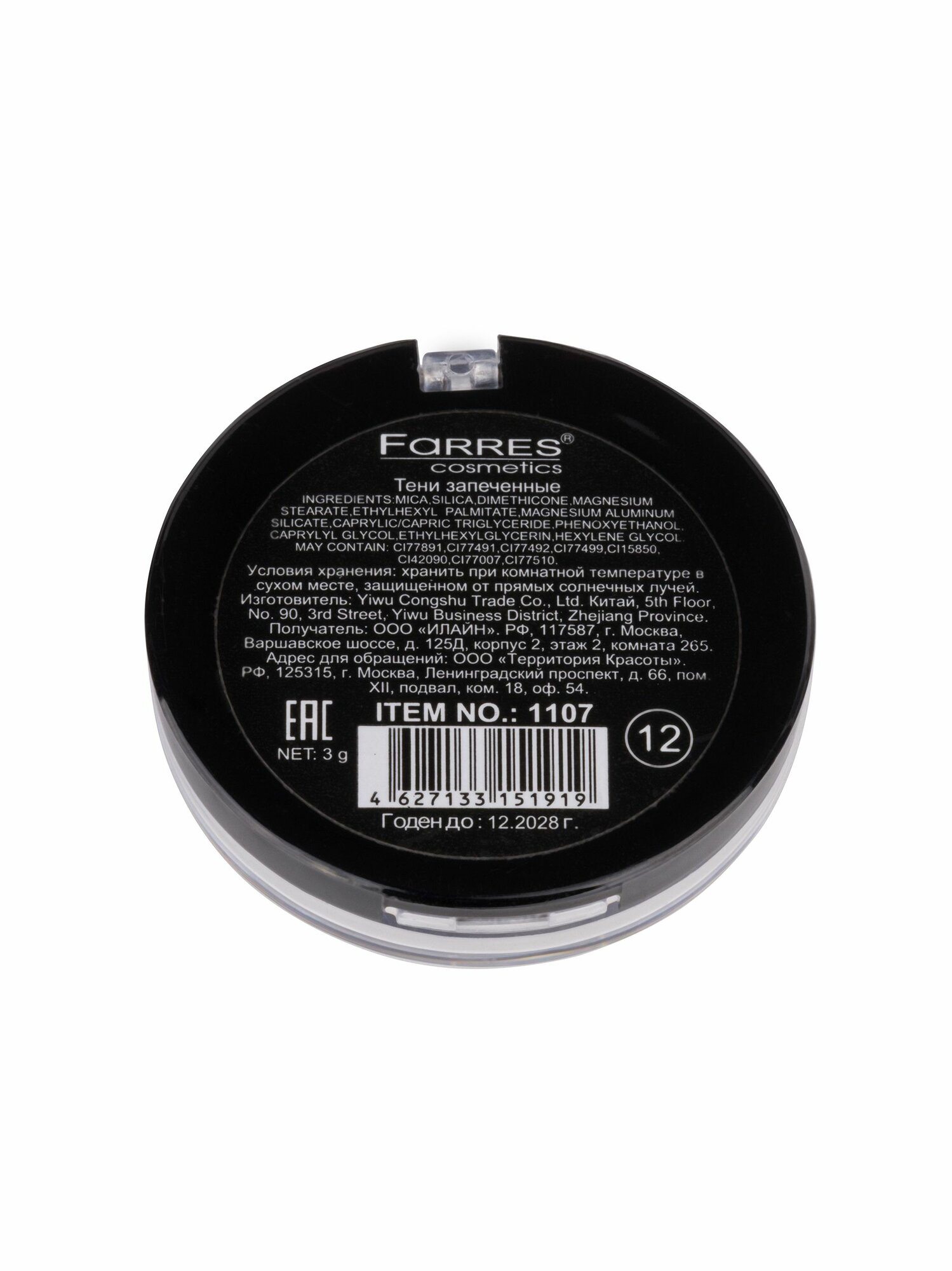 Farres cosmetics Тени-пигмент для век запеченные 1107 тон 12