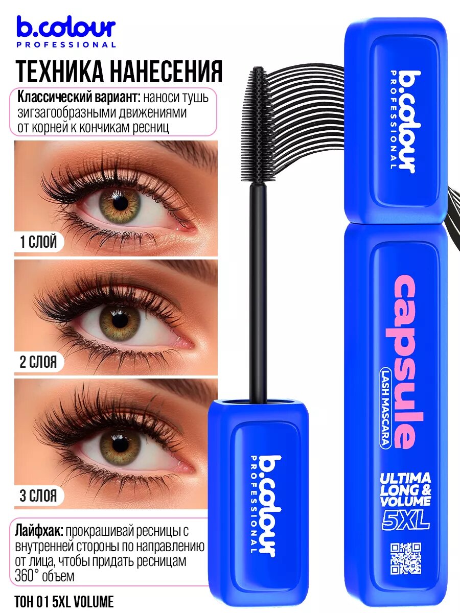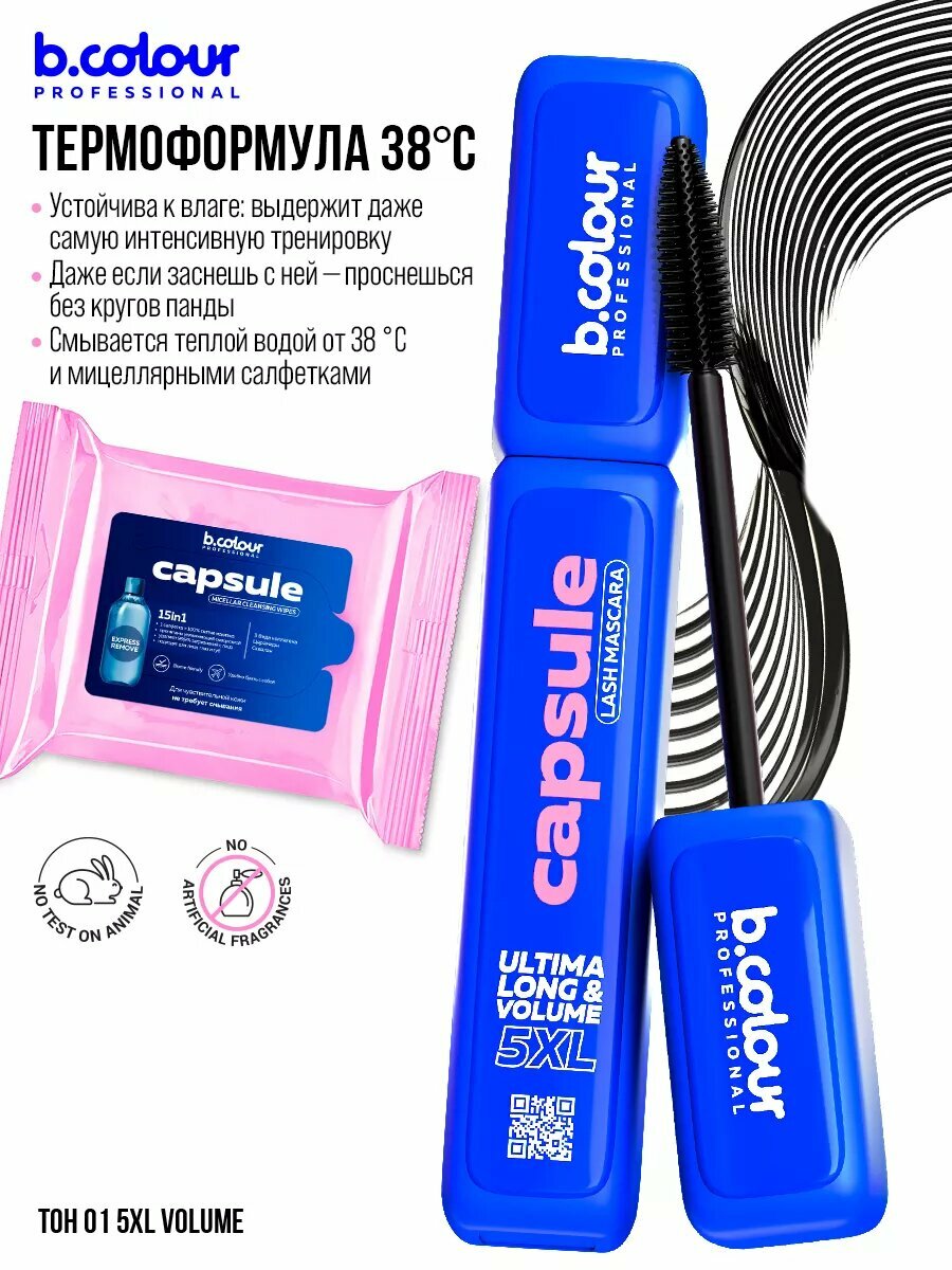 Купить B.COLOUR PROFESSIONAL Тушь для ресниц, термотушь 5XL объем и удлинение CAPSULE, 01 5XL Volume