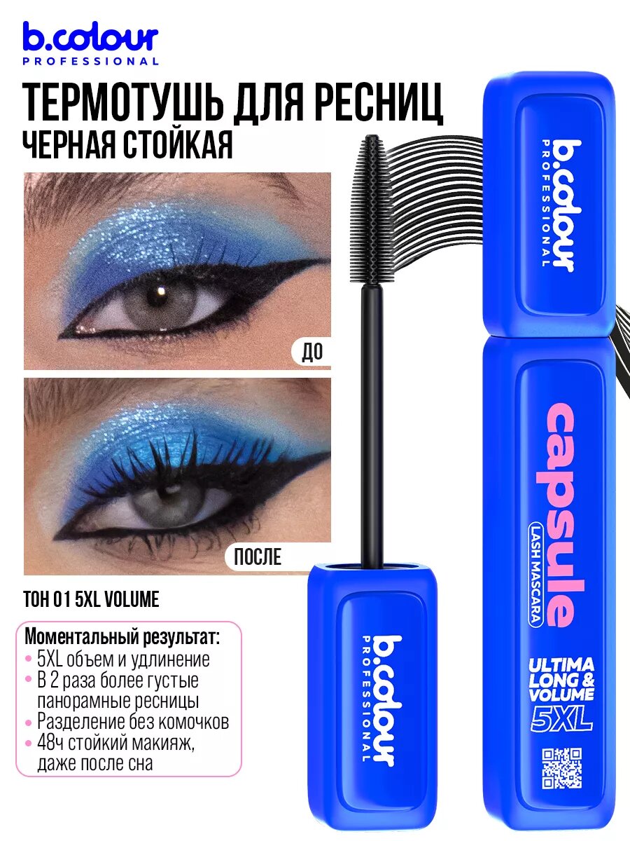 Тушь для ресниц B.COLOUR PROFESSIONAL CAPSULE термотушь черная удлиняющая 01 5XL Volume