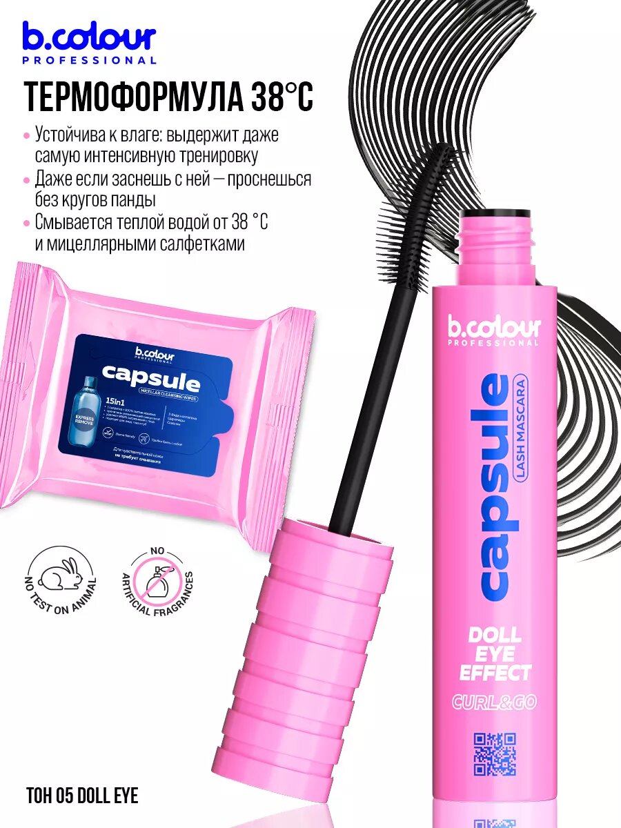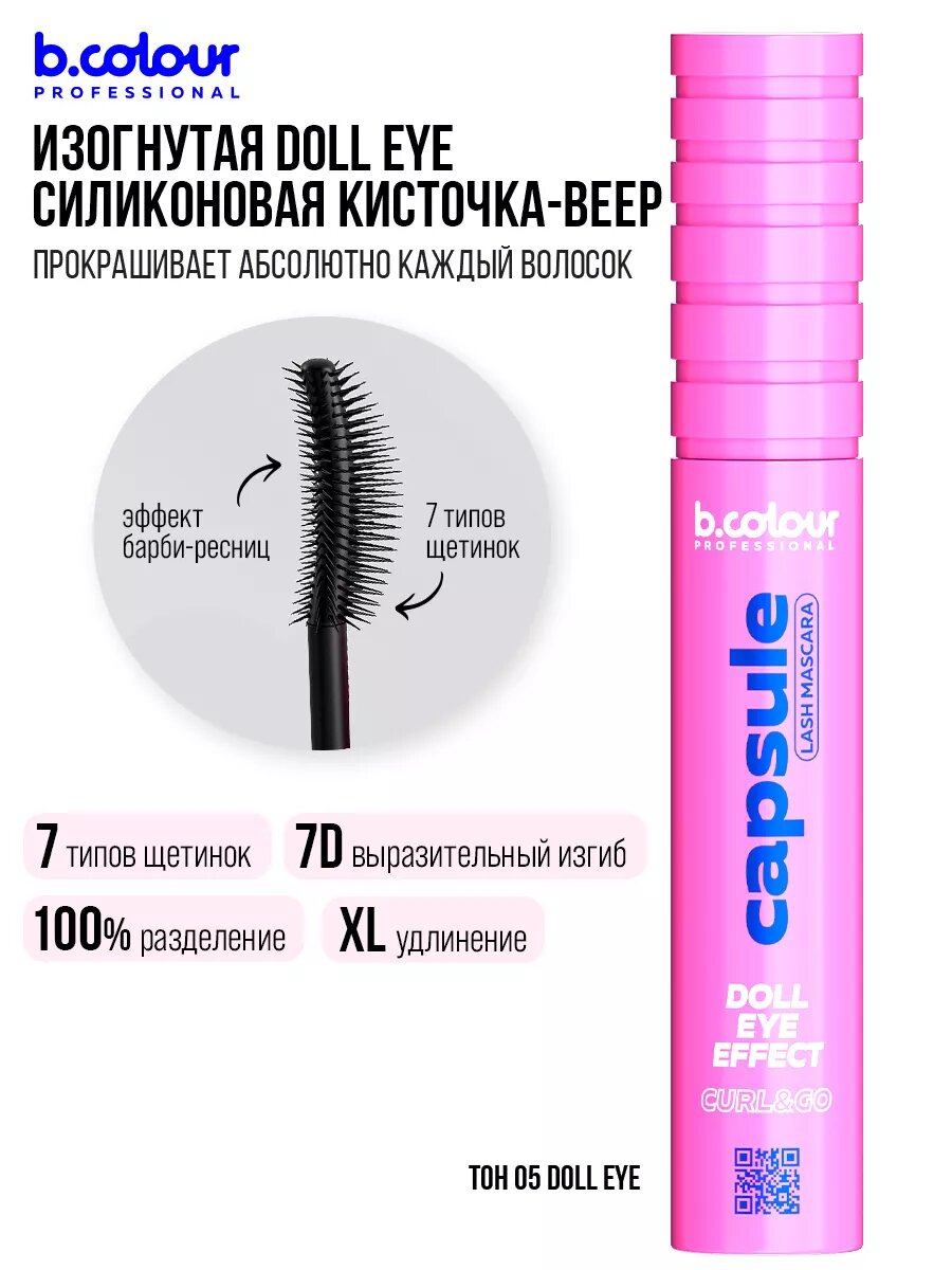 Тушь для ресниц суперстойкая b.colour professional Capsule Doll Eye Effect Curl&Go Lash Mascara т.Black 7,3 мл