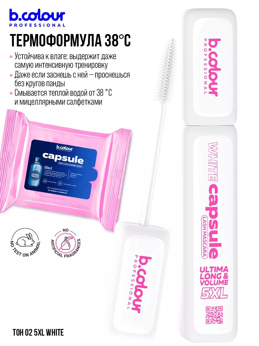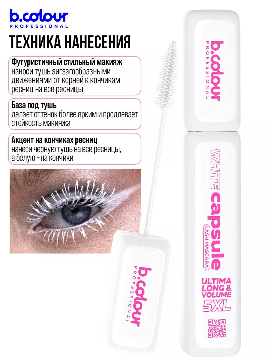 СохранитьB.COLOUR PROFESSIONAL Тушь для ресниц, термотушь водостойкая, белая CAPSULE 02 5XL White интересное: