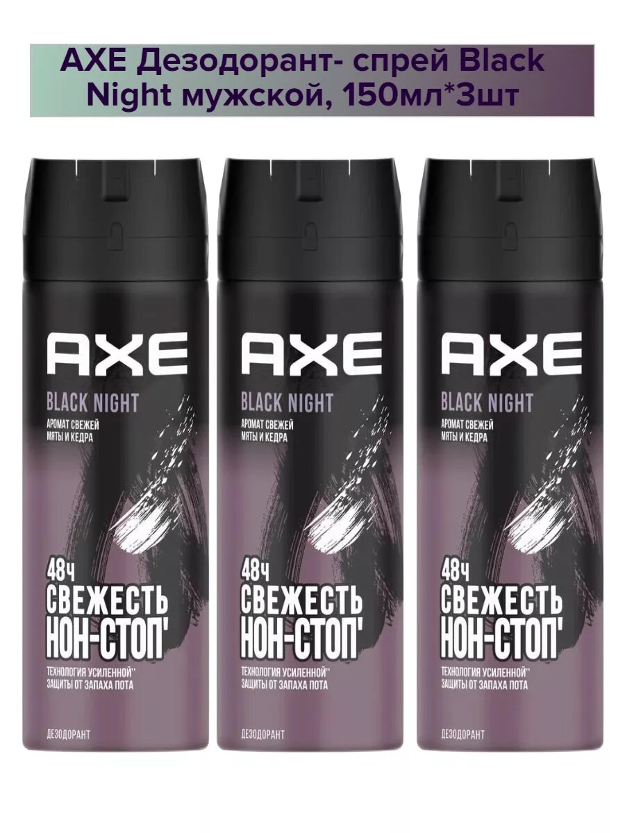 Axe дезодорант-спрей мужской Black Night с мятой и кедром, 48 часов защиты 150 мл - 3 шт