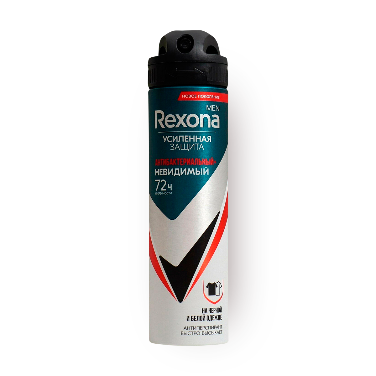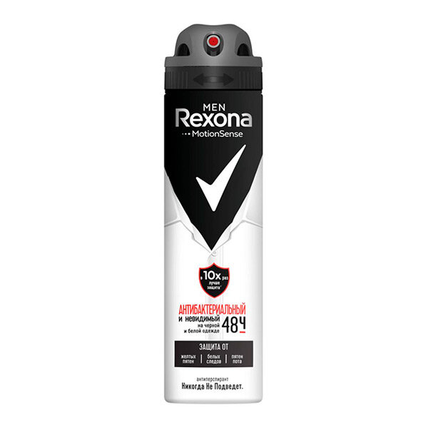 Rexona Дезодорант-спрей Men Антибактериальный, невидимый на чёрном и белом, 150 мл/