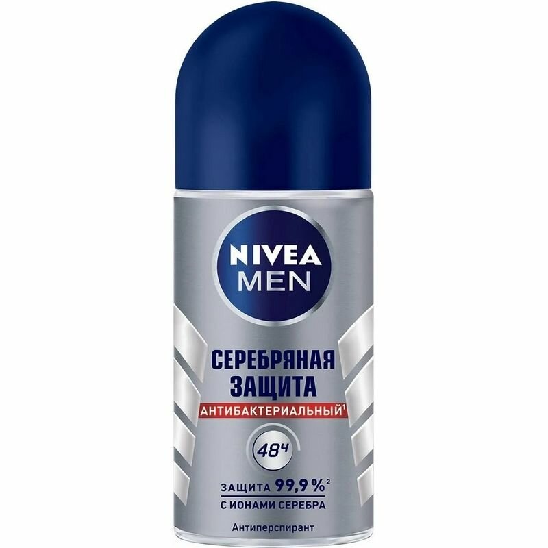 Дезодорант-антиперспирант шариковый NIVEA Men Серебряная защита антибактериальный с ионами серебра, 2 x 50 мл (2 штуки)