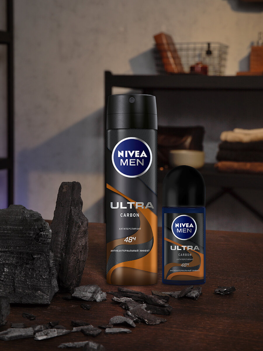 Купить Дезодорант-антиперспирант шариковый NIVEA Men ULTRA Carbon антибактериальный эффект, 2 x 50 мл (2 штуки)