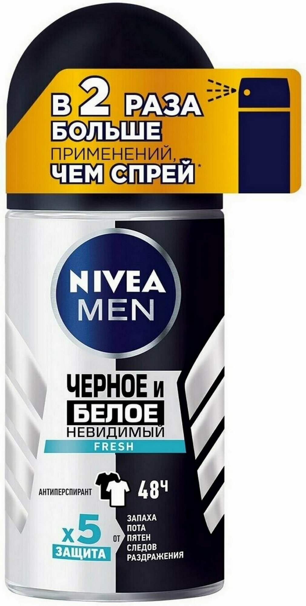 Купить Nivea Men Дезодорант-антиперспирант шариковый Невидимый для черного и белого Fresh муж, 50 мл - 6 шт