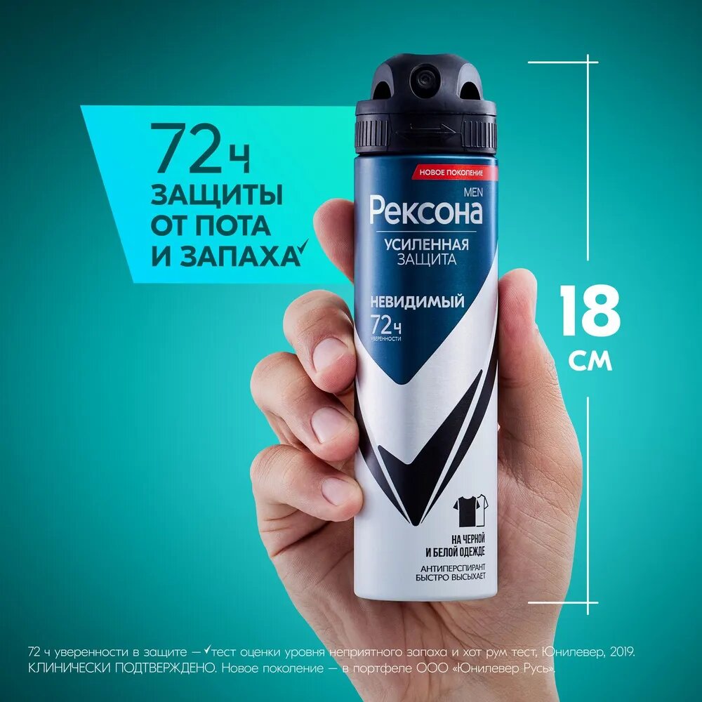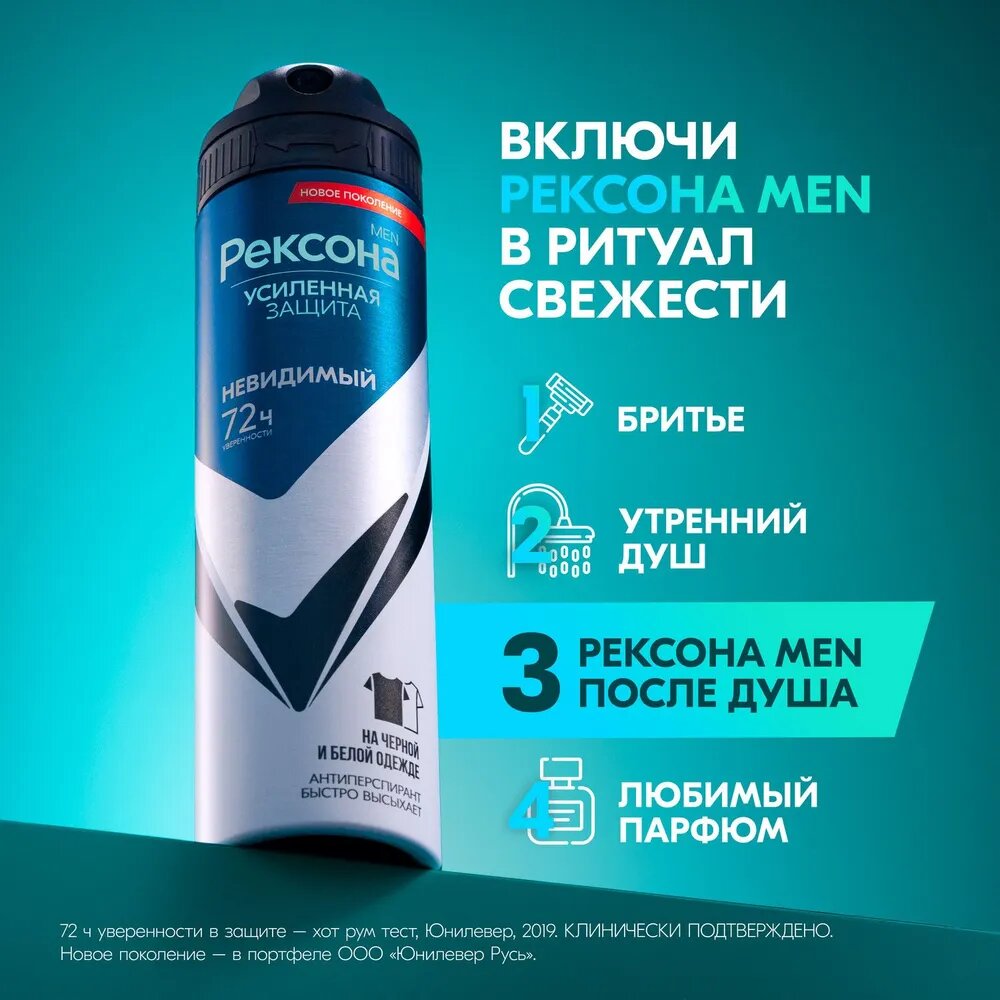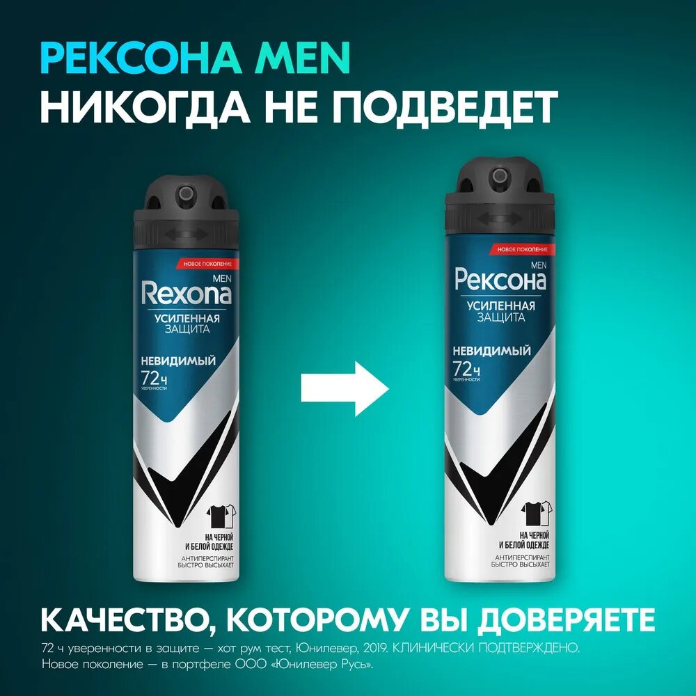 Купить Rexona Men антиперспирант аэрозоль усиленная защита 72ч уверенности Невидимый на черной и белой одежде, 150 мл