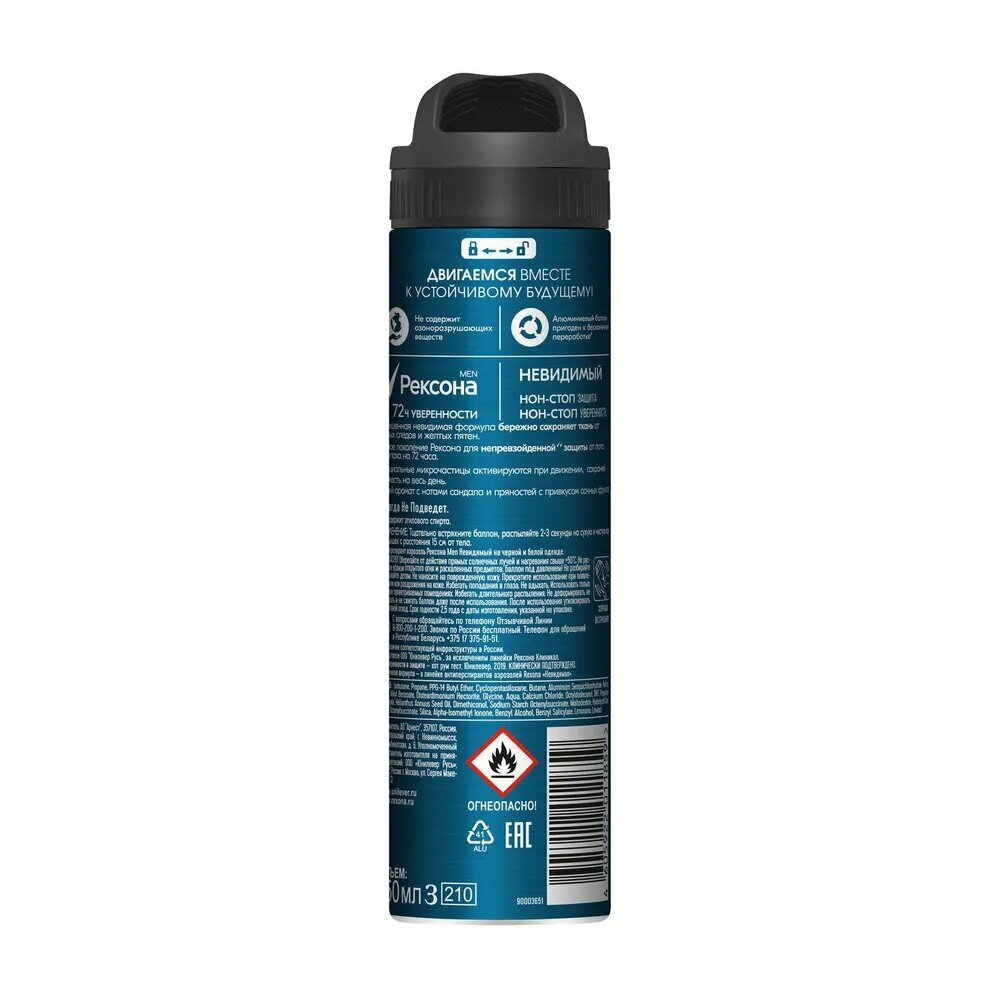 Ниже Вы можете прочитать отзывы на Rexona Men антиперспирант аэрозоль усиленная защита 72ч уверенности Невидимый на черной и белой одежде, 150 мл, ознакомится с подробными характеристиками, посмотреть интересные обзоры и фотографии на Rexona Men антиперспирант аэрозоль усиленная защита 72ч уверенности Невидимый на черной и белой одежде, 150 мл.