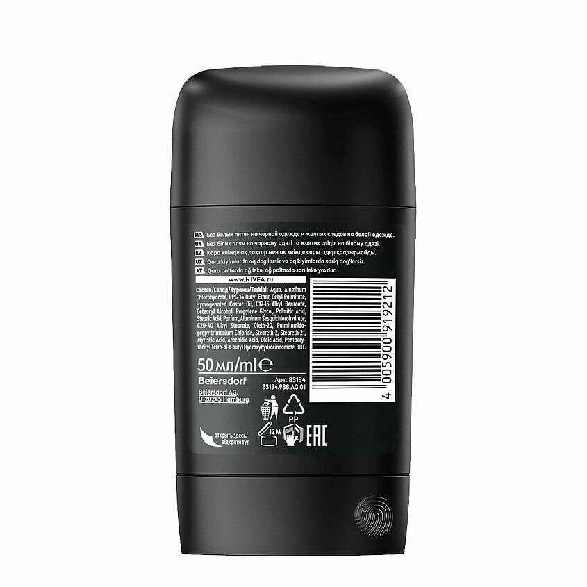 Nivea Дезодорант-Стик мужской, Невидимый, для черного и белого, 50 мл., 3шт.