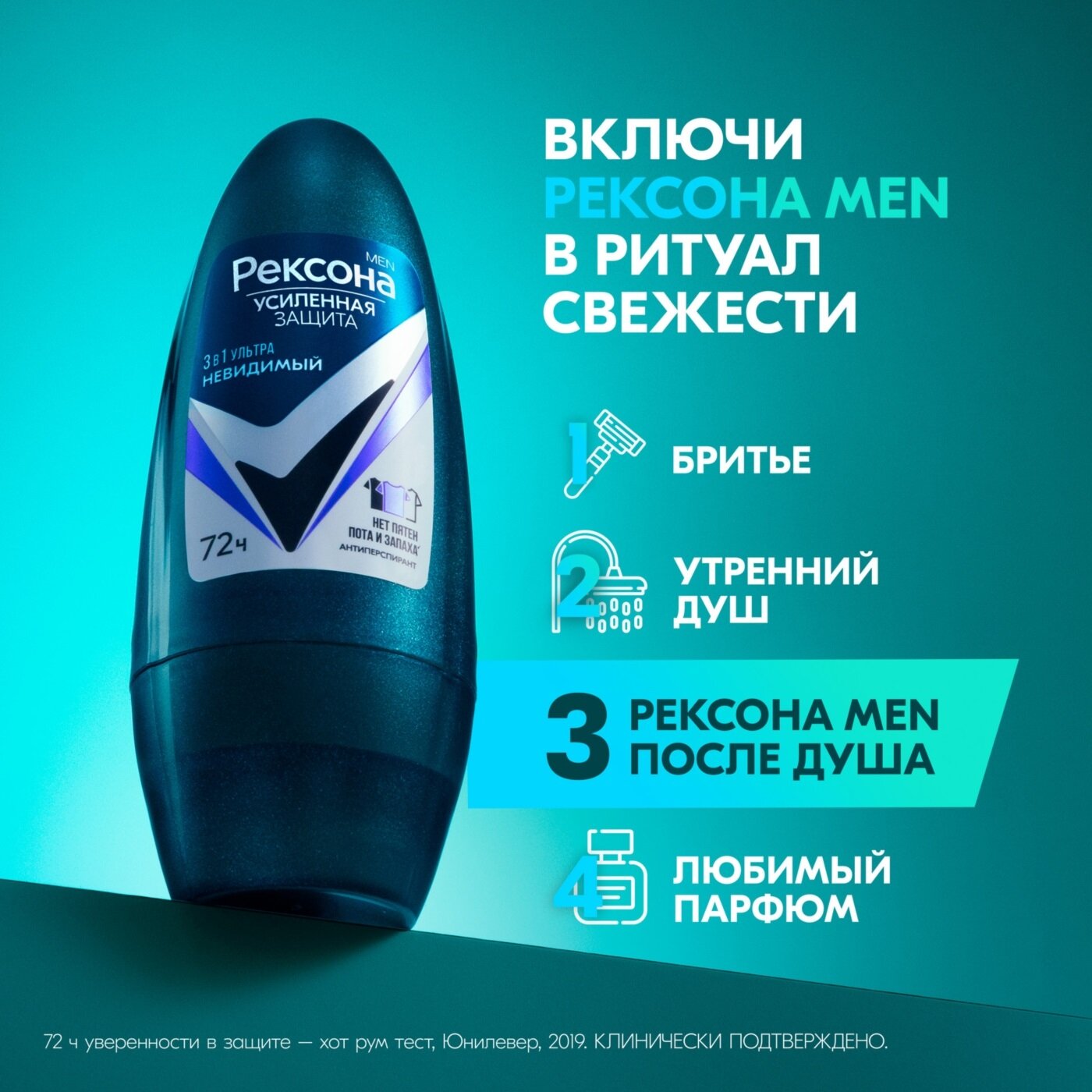 РЕКСОНА Антиперспирант шариковый "Ультраневидимый" Rexona Men 72ч уверенности без пота и запаха муж, 50 мл интересное: