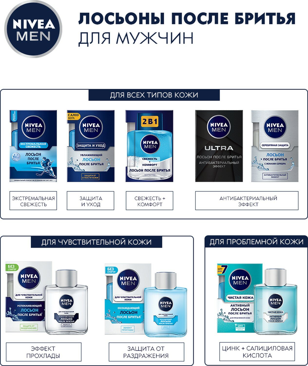 Лосьон после бритья успокаивающий NIVEA MEN для чувствительной кожи без спирта*, 100 мл.
