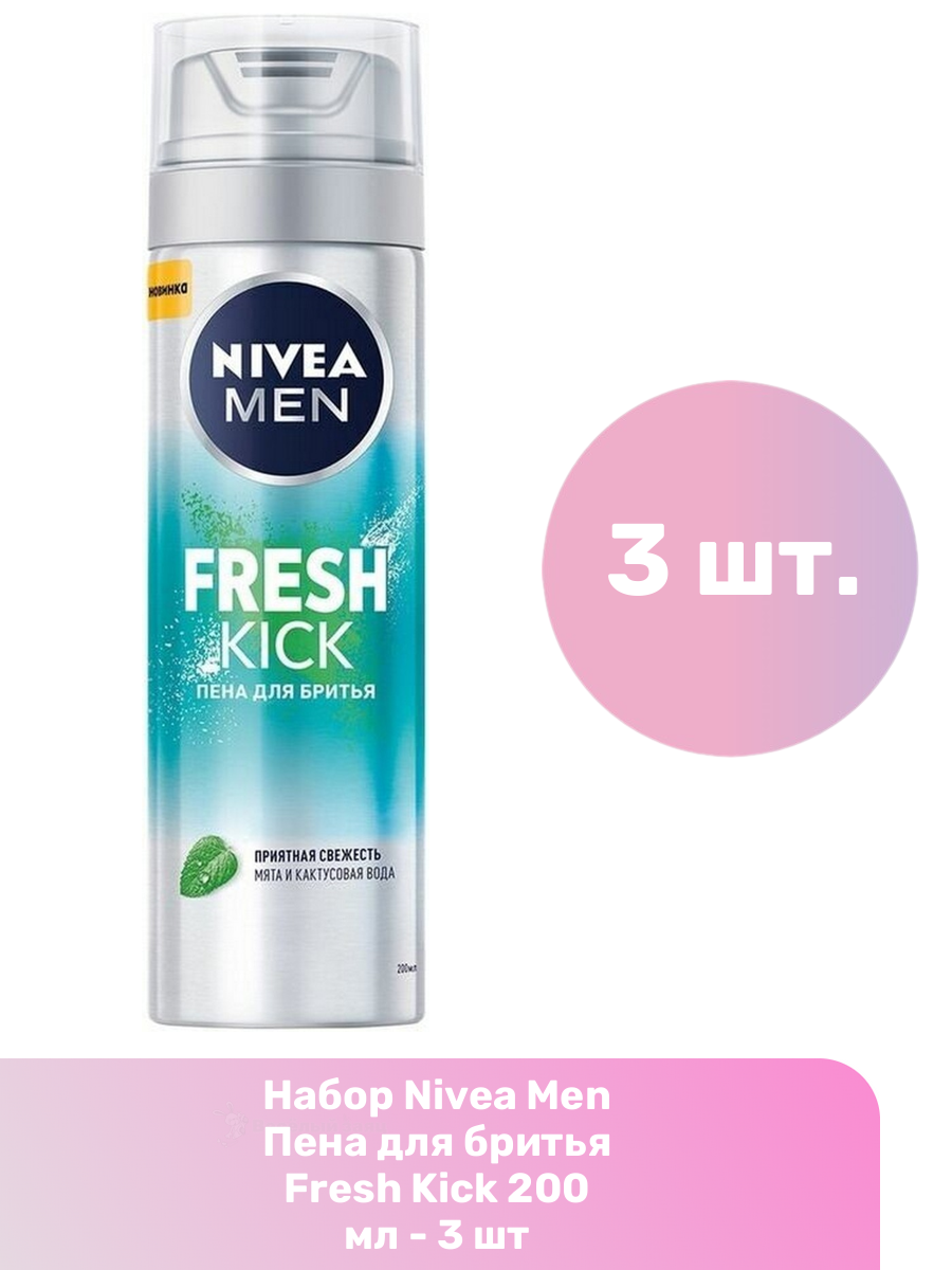 Nivea Men Пена для бритья Fresh Kick 200 мл - 3 шт интересное: