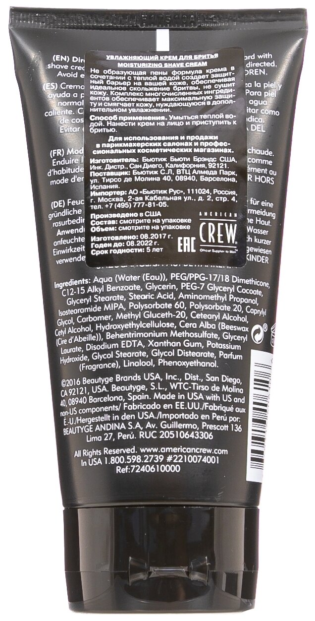 Крем для бритья Увлажняющий American Crew, 150 мл интересное: