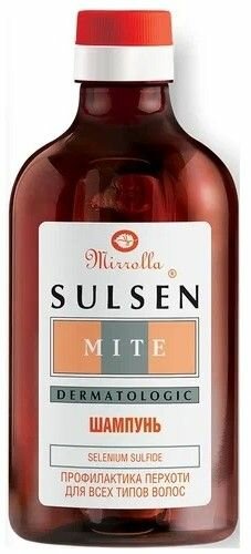 | Способ применения | намочить волосы. Нанести небольшое количество шампуня и распределить по всей длине волос. Вспенить шампунь и массировать в течение 2-3 минут. Смыть большим количеством воды. При попадании в глаза немедленно промойте водой. Использовать через день в течение 4-6 недель, после чего перейти на регулярное применение дерматологически мягкого шампуня «Mirrolla Sulsen Mite» еще в течение 1,5-2 месяцев. Повторять курс по необходимости. Для усиления эффекта рекомендуется применять вместе с пастой «Mirrolla Sulsen Forte» |
