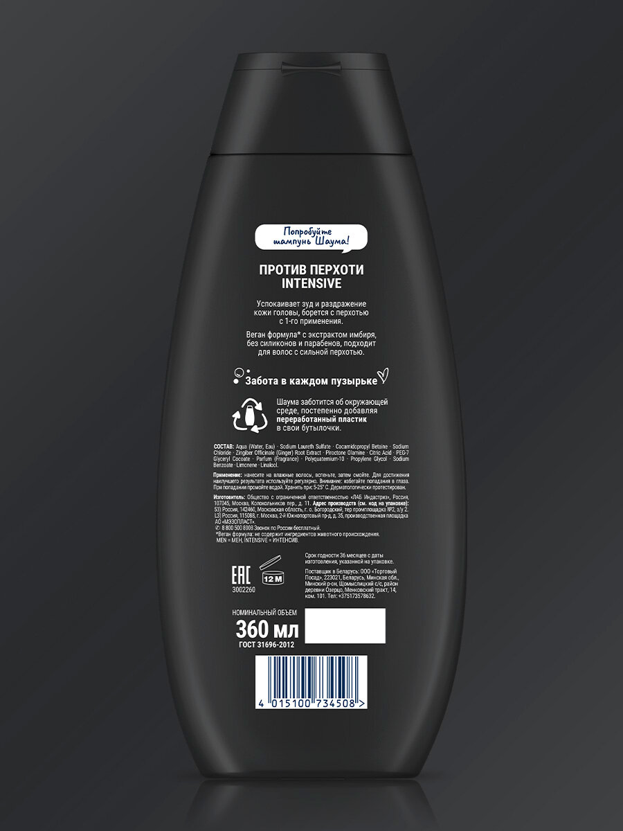 Шампунь для мужчин Шаума Men Intensive, с экстрактом имбиря, для волос с сильной перхотью, 360мл