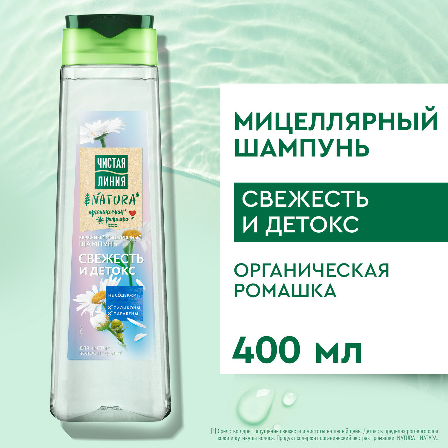 Купить Чистая Линия NATURA мицеллярный шампунь бережный Свежесть и детокс Organic Ромашка, чистые волосы надолго 400 мл
