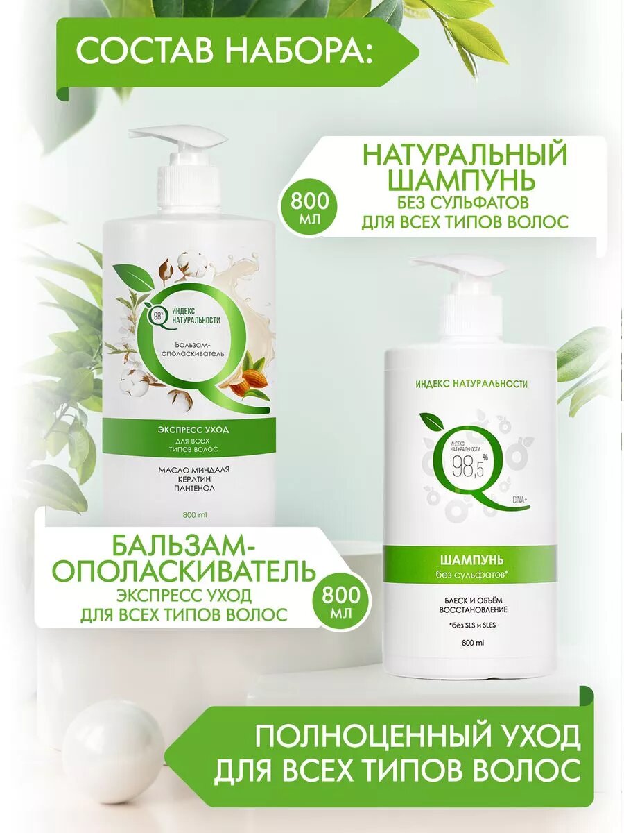 Набор для ухода за волосами Индекс Натуральности Шампунь ИН 800 ml+Бальзам-ополаскиватель ИН 800 ml