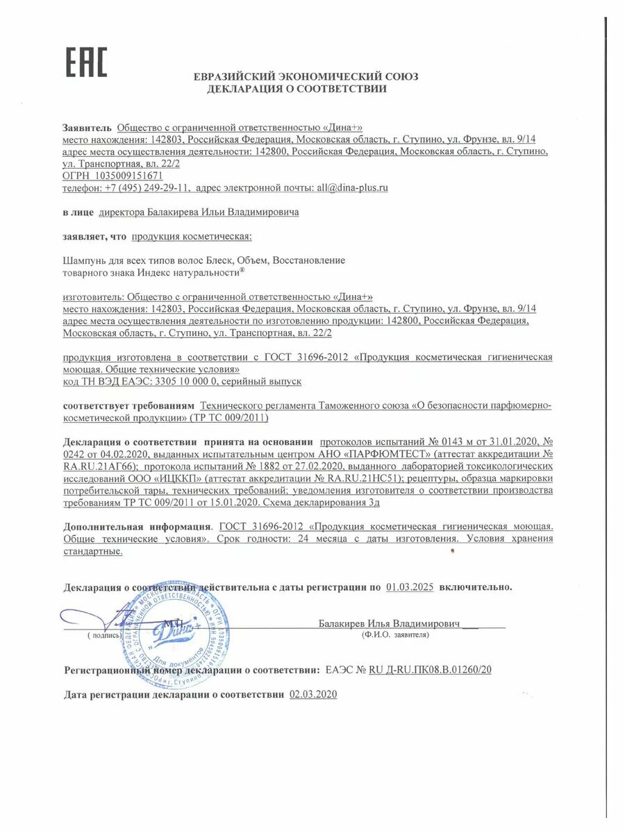 | Дополнительная информация | Не опасен для применения. Не тестируется на животных. Безсульфатный |
