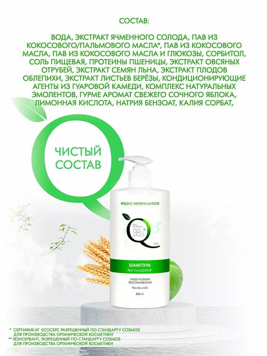 Шампунь ИНДЕКС НАТУРАЛЬНОСТИ бессульфатный универсальный 800 ml