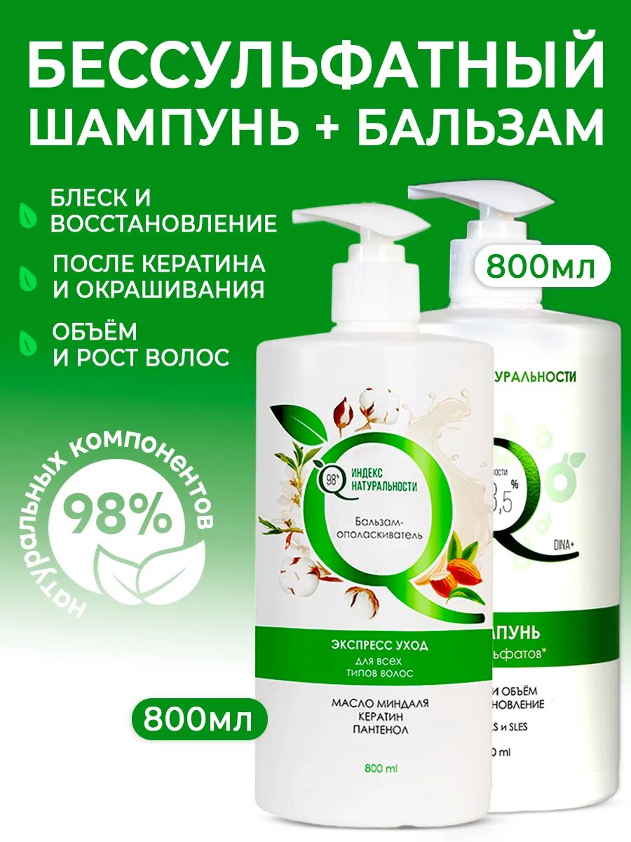 Купить Бессульфатный женский шампунь+бальзам кондиционер для волос индекс натуральности