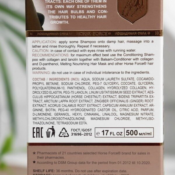 Купить Шампунь-кондиционер Лошадиная сила с коллагеном и ланолином, 500 мл