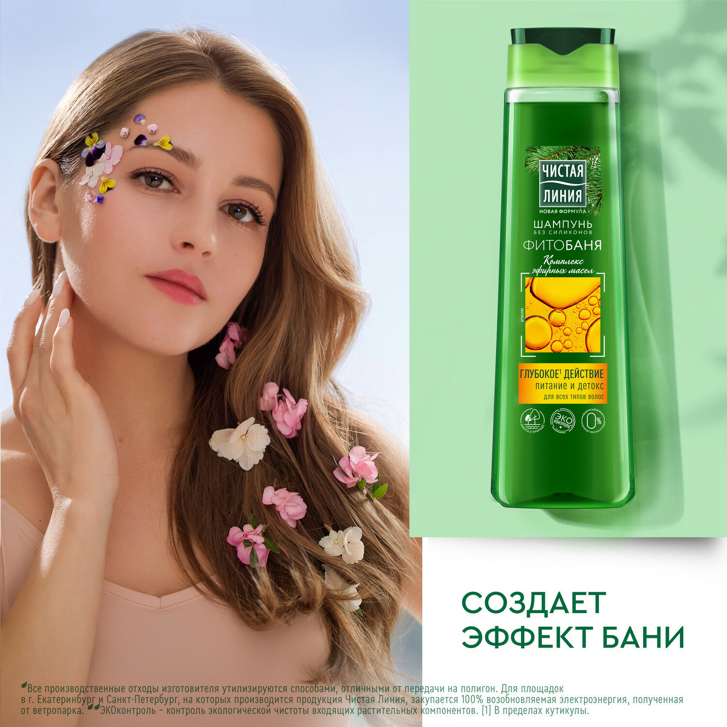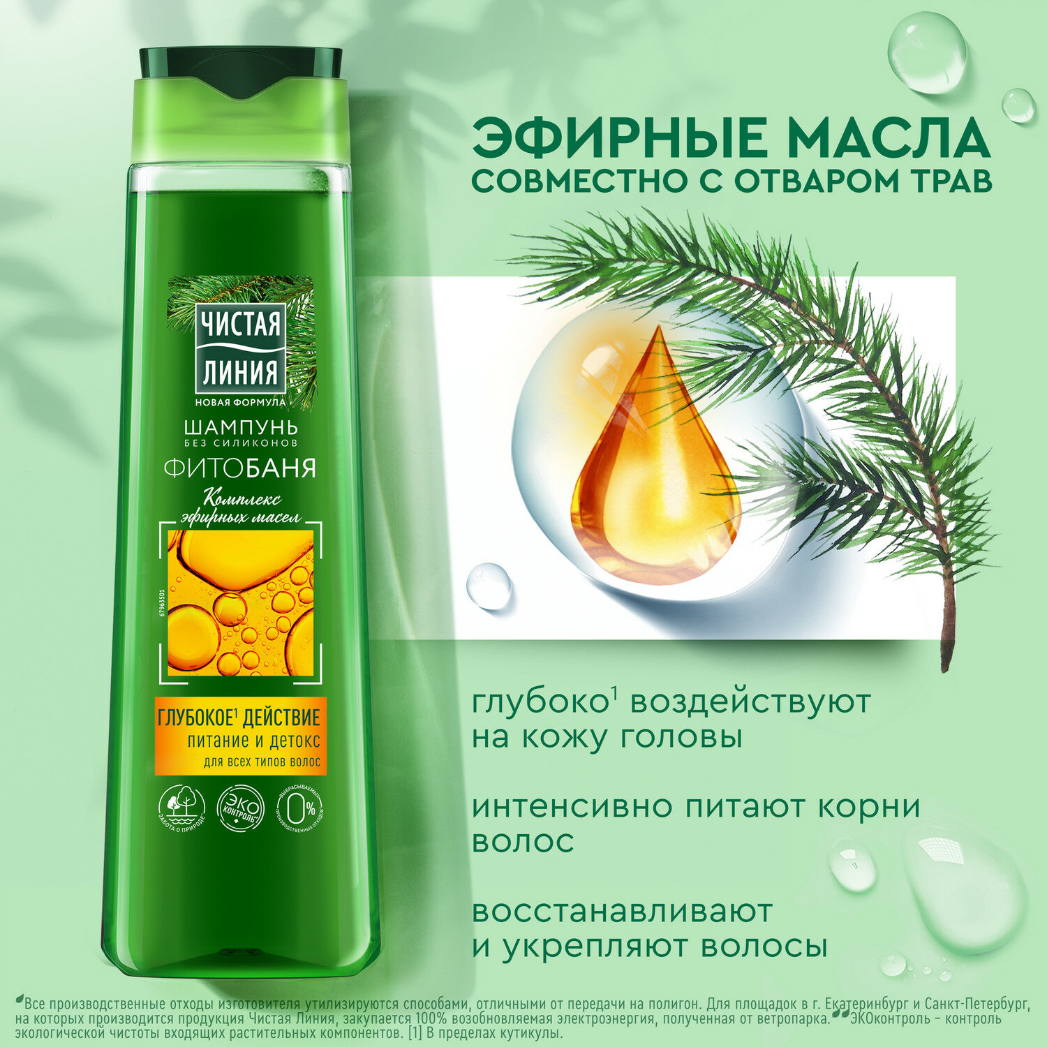 Купить Чистая Линия шампунь фитобаня питание и детокс для всех типов волос комплекс эфирных масел 400 мл