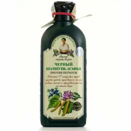 Шампунь от перхоти для волос Рецепты бабушки Агафьи "Черный" увлажняющий укрепляющий 350 мл