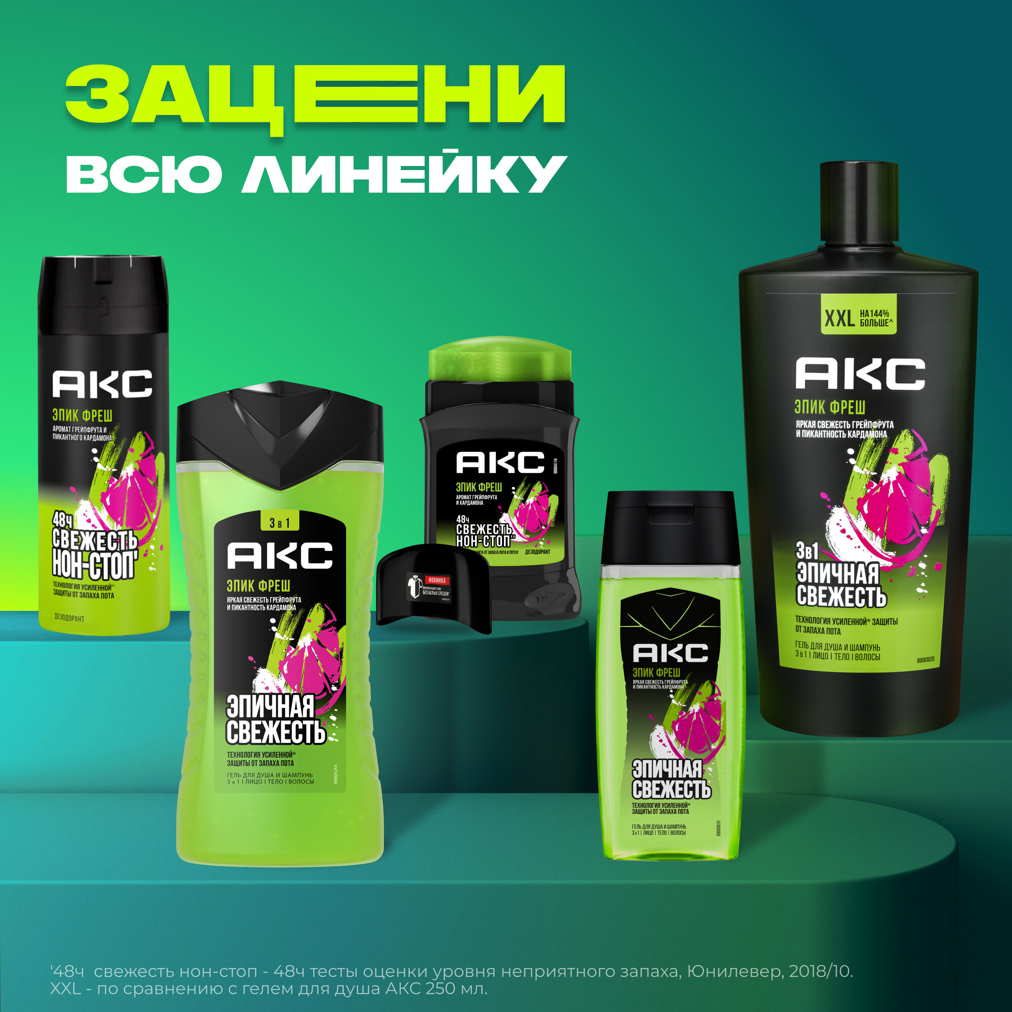 Ниже Вы можете прочитать отзывы на Гель для душа для умывания лица шампунь мужской 3в1 Акс Эпик Фреш 100 мл, ознакомится с подробными характеристиками, посмотреть интересные обзоры и фотографии на Гель для душа для умывания лица шампунь мужской 3в1 Акс Эпик Фреш 100 мл.