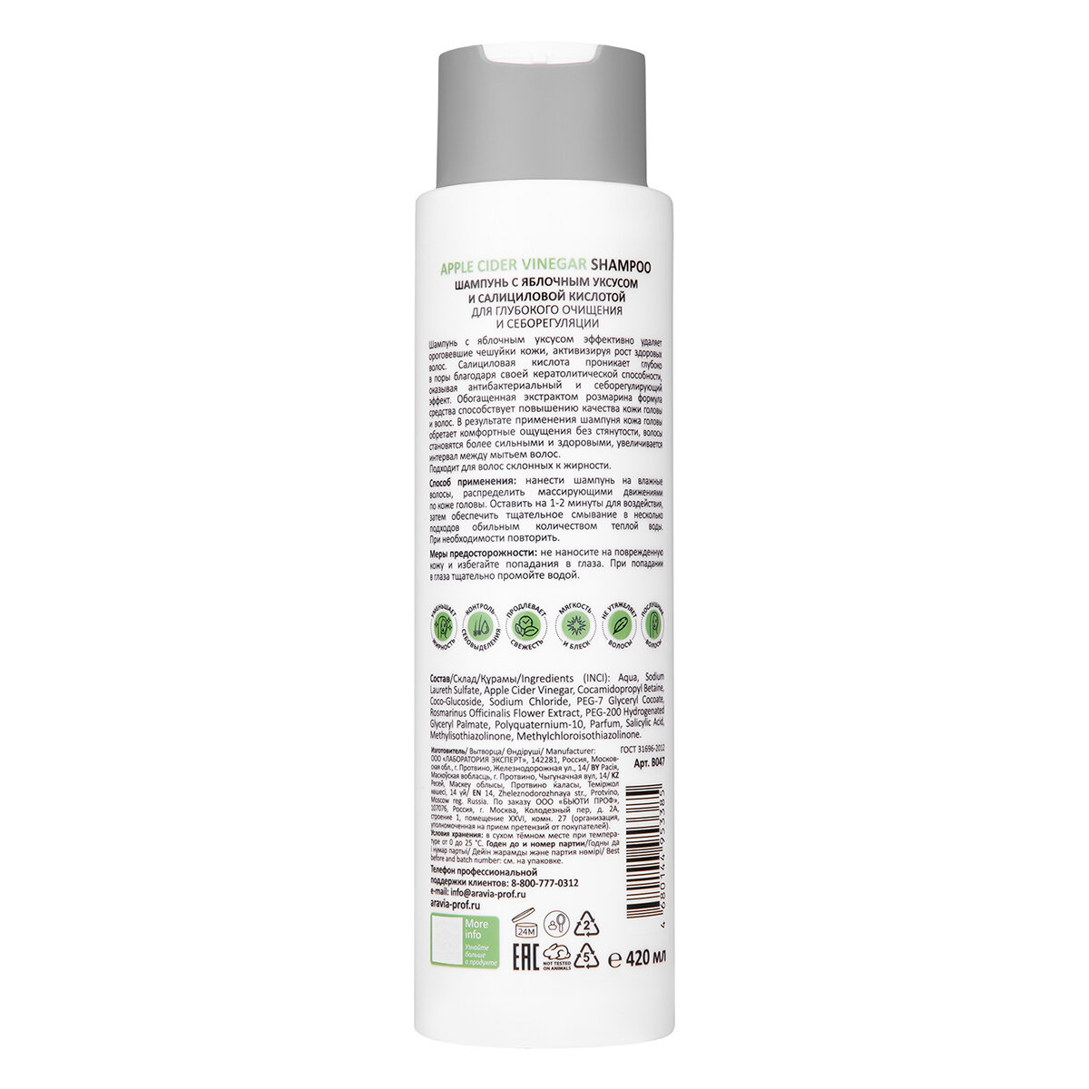 ARAVIA Шампунь для волос, склонным к жирности, с яблочным уксусом и салициловой кислотой Apple Cider Vinegar Shampoo, 420 мл интересное: