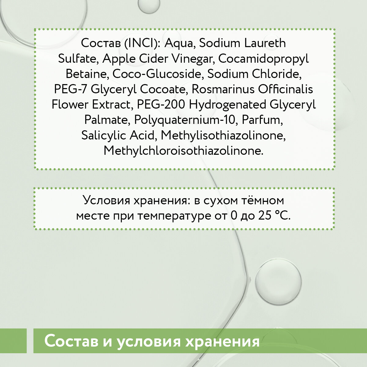 | Эффект | восстановление / очищение / себорегуляция / снятие зуда и раздражения / увлажнение / успокаивающий |
