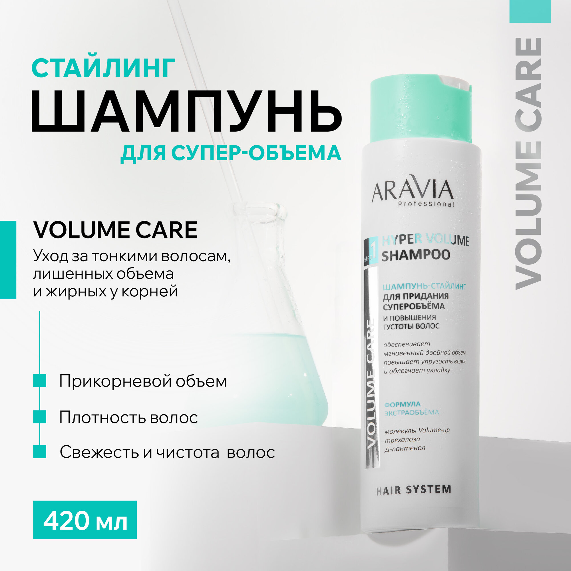 ARAVIA Шампунь-стайлинг для придания суперобъема и повышения густоты волос Hyper Volume Shampoo, 420 мл интересное: