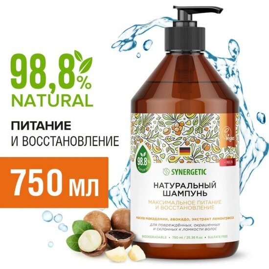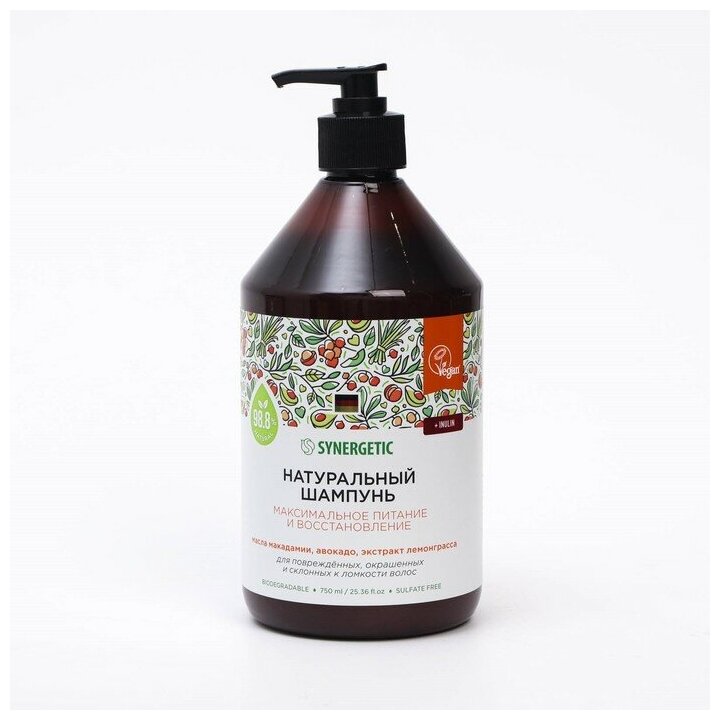 Купить Бессульфатный шампунь Synergetic Максимальное питание и восстановление, 750 мл