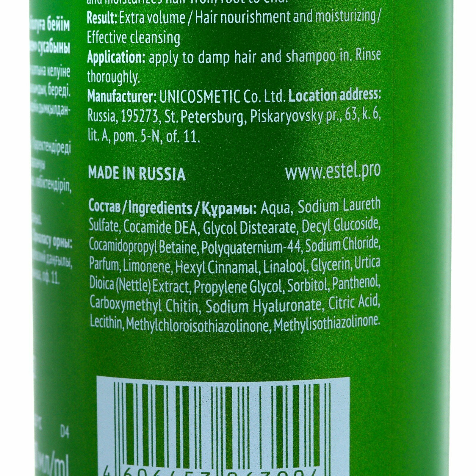 | Состав | aqua, sodium laureth sulfate, cocamide dea, glycol distearate, cocamidopropyl betaine, decyl glucoside, polyquaternium-44, sodium chloride, parfum, limonene, butylphenyl methylpropional, hexyl cinnamal, linalool, citronellol, glycerin, urtica dioica (nettle) extract, propylene glycol, sorbitol, panthenol, carboxymethyl chitin, sodium hyaluronate, citric acid, lecithin, methylchloroisothiazolinone, methylisothiazolinone |