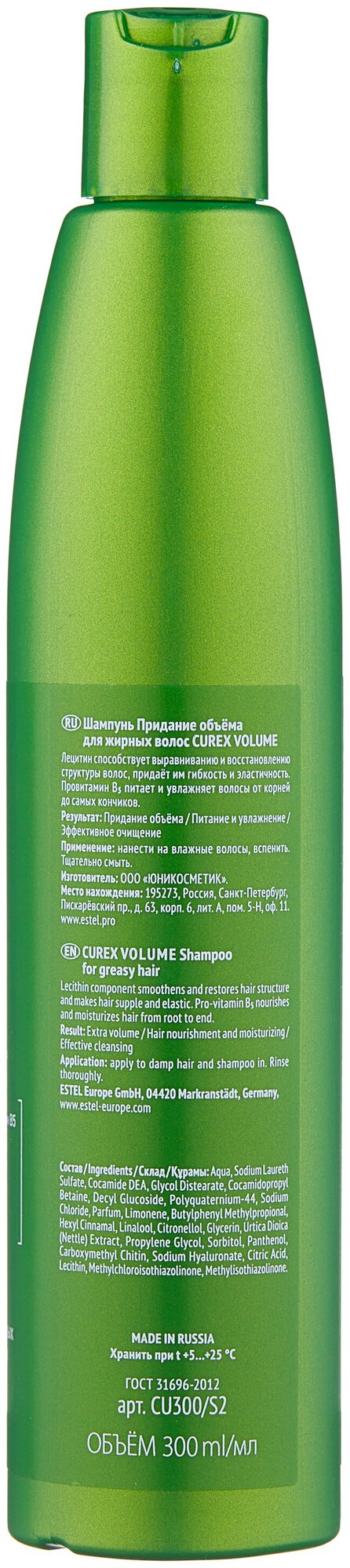 ESTEL / Curex Volume – Шампунь для склонных к жирности волос «Живой объем», 300мл, (арт.: CR300/S2)