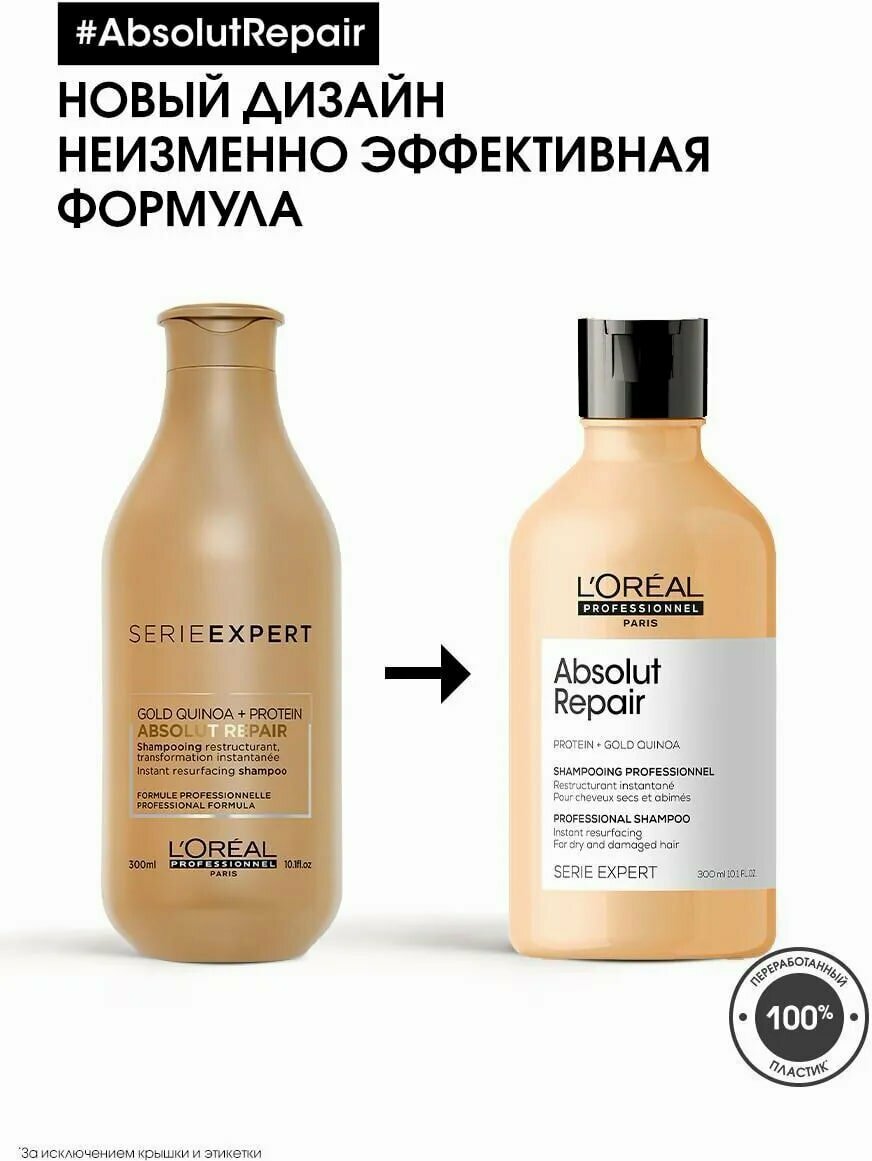 СохранитьL'OREAL PROFESSIONNEL Absolut Repair Gold Shampoo - Шампунь для сильно поврежденных волос, 1500 мл интересное: