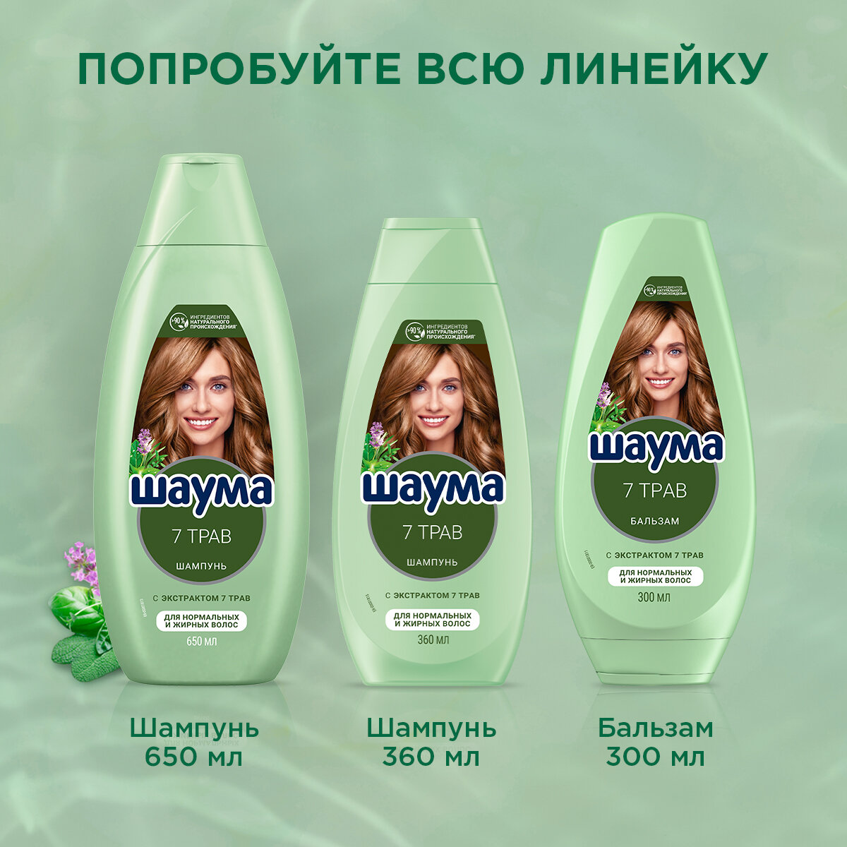 Шаума Шампунь для нормальных и жирных волос женский 7 Трав, 360 мл
