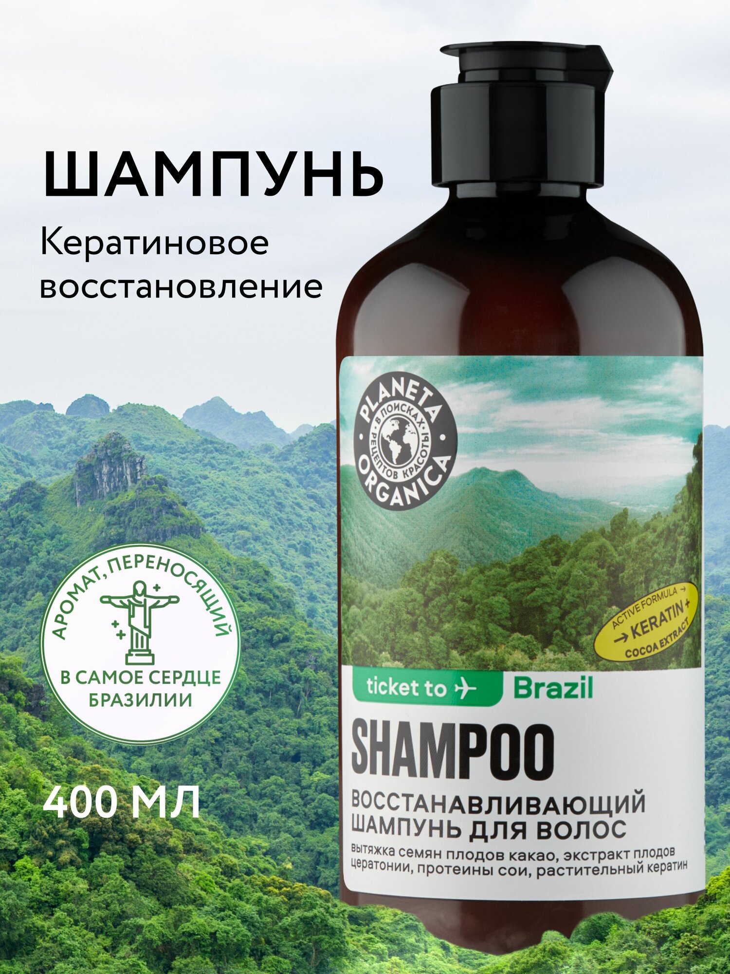 Купить Planeta Organica Ticket to Brazil Шампунь для поврежденных волос восстанавливающий ламинирующий с кератином 400 мл