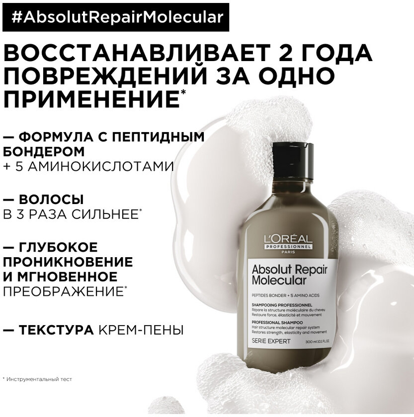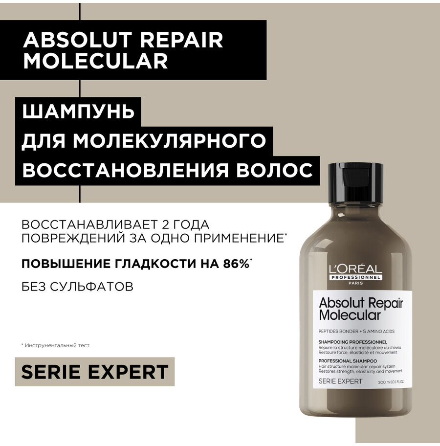 Купить Loreal Professionnel Absolut Repair Molecular Лореаль Абсолют Репейр Шампунь для молекулярного восстановления волос, 300 мл NEW -