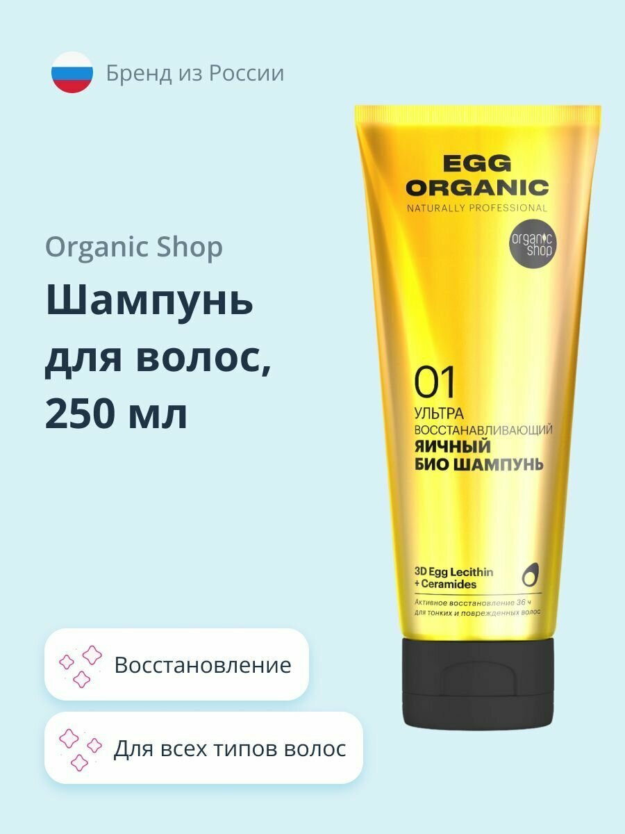 Купить Шампунь Organic Shop "Био-шампунь Egg Organic Naturally Professional", яичный, ультра восстанавливающий, 250 мл