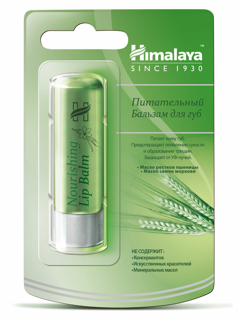 Himalaya Since 1930 Бальзам для губ питательный c маслом ростков пшеницы и семян моркови увлажняющий, 10 г