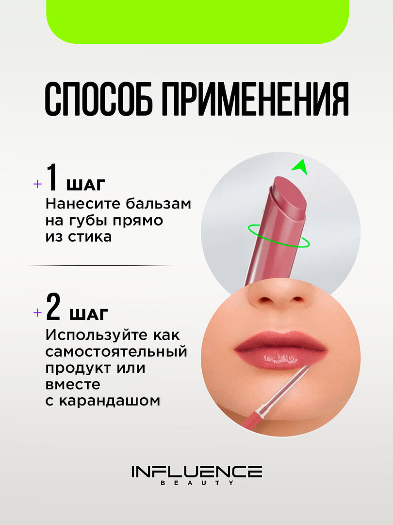 INFLUENCE BEAUTY Бальзам-стик для губ Glow Injection, 2 г, 02