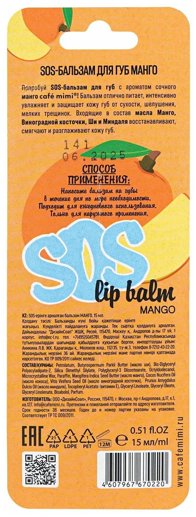 SOS-бальзам для губ манго, 15 мл, CafeMIMI