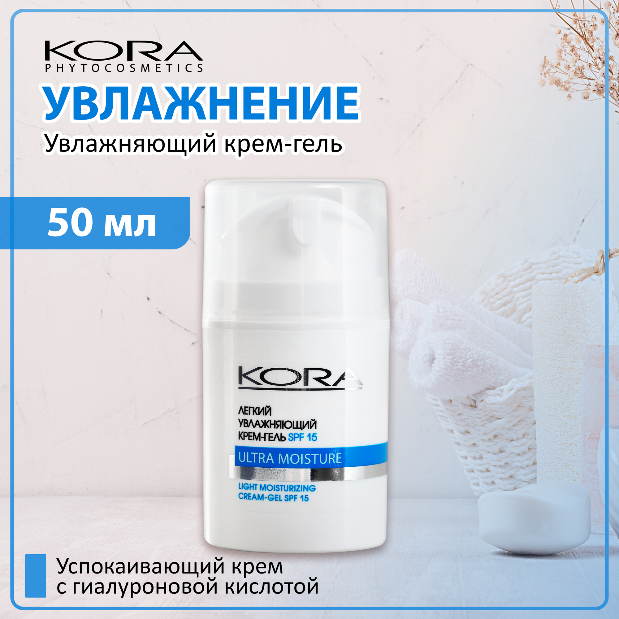 Легкий увлажняющий крем-гель. Защита от фотостарения SPF-15, 50 мл, Kora