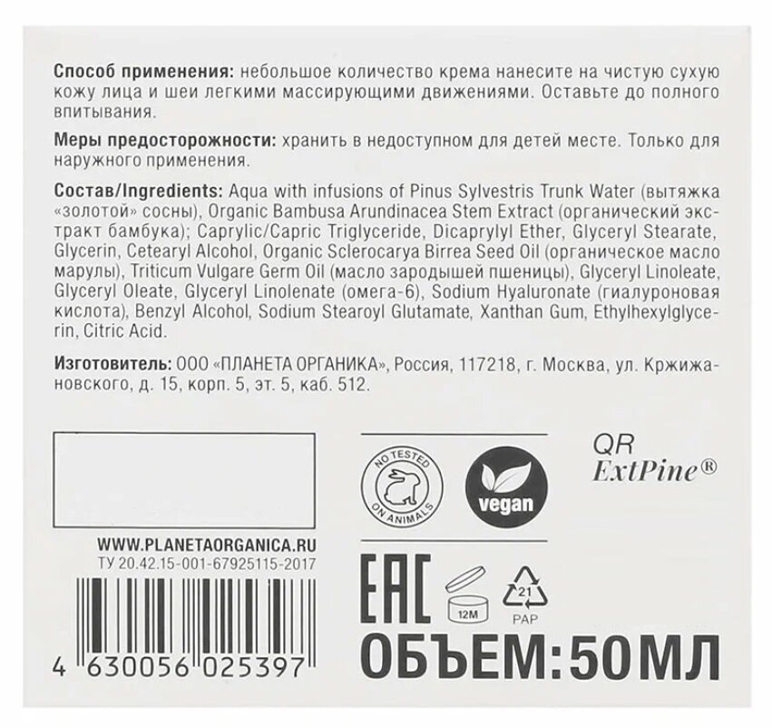 Planeta Organica Pure Дневной крем для лица “Омолаживающий”, 50 мл