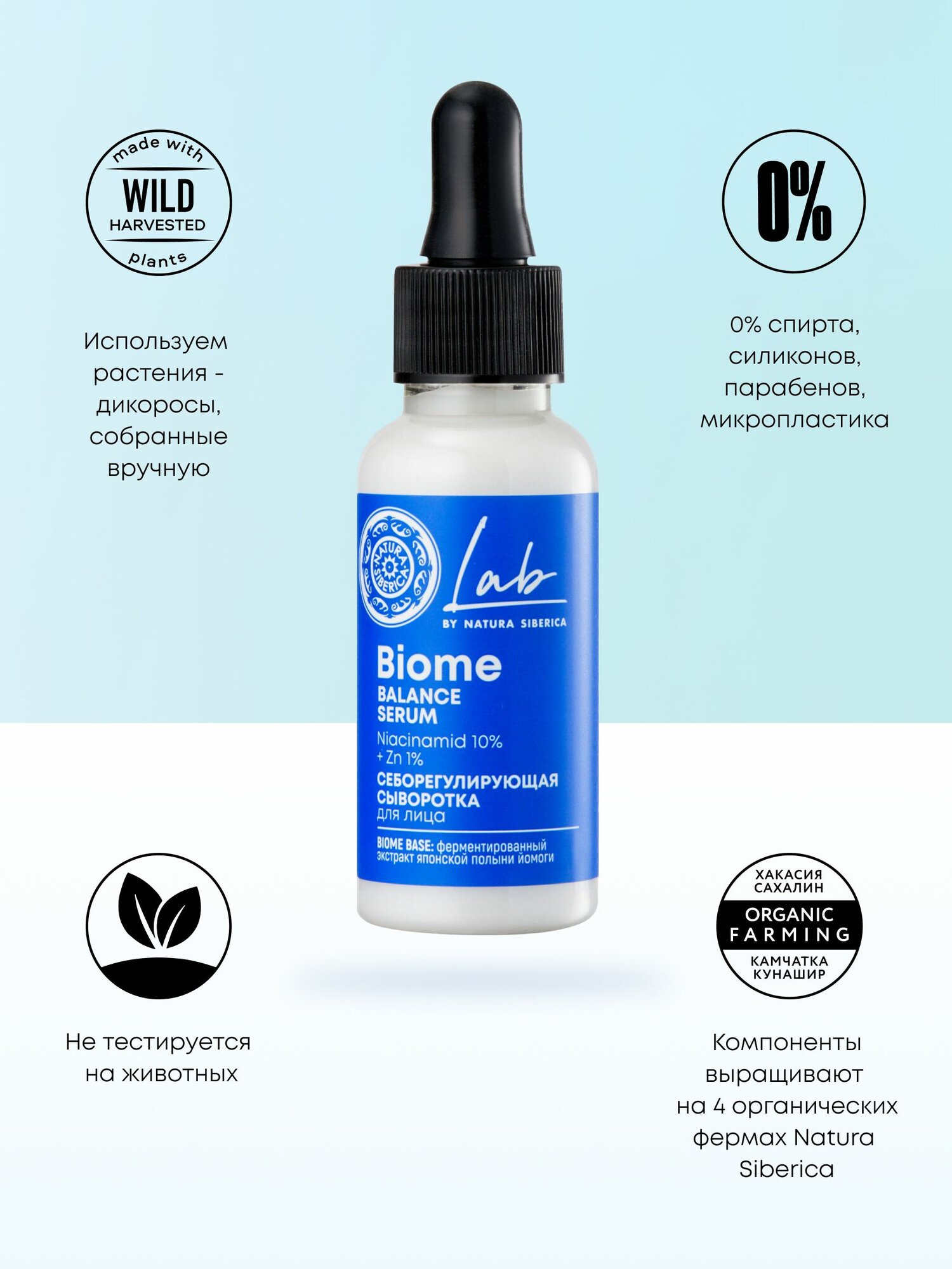 Natura Siberica Lab Biome Сыворотка для лица cеборегулирующая от прыщей с ниацинамидом 10% и цинком 1% матирующая 30 мл интересное: